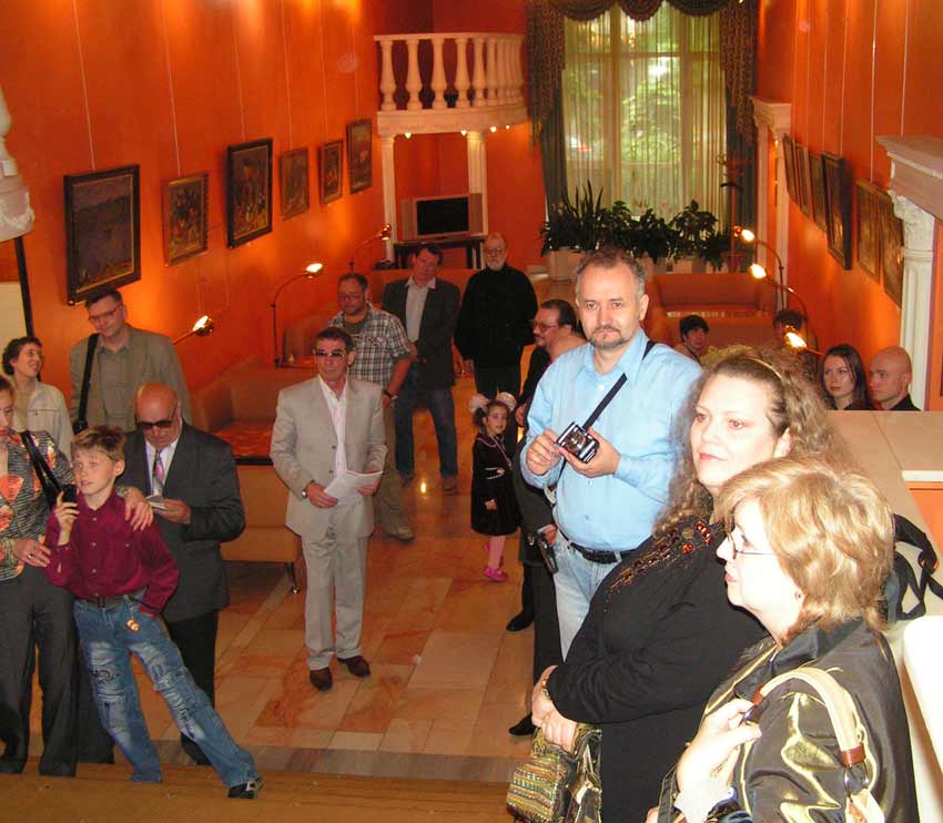 Лилия Славинская и Вячеслав Мельников, сын художника, открывают выставку.