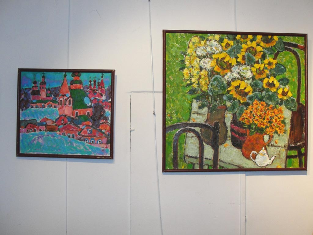 Дарья Тимошкина представила коллекцию работ в разнообразных жанрах: натюрморт, пейзаж, выполненные в декоративном стиле.